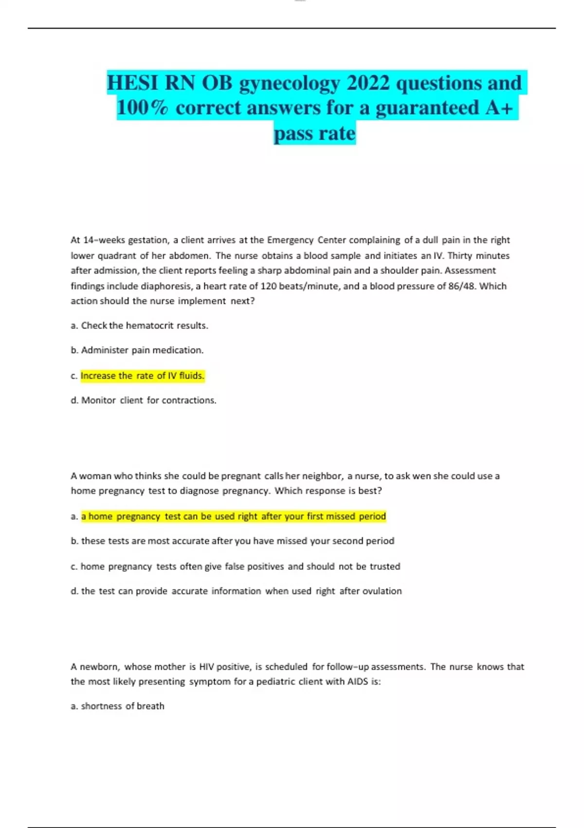 hesi rn ob gynecology 2022 questions and 100 corr