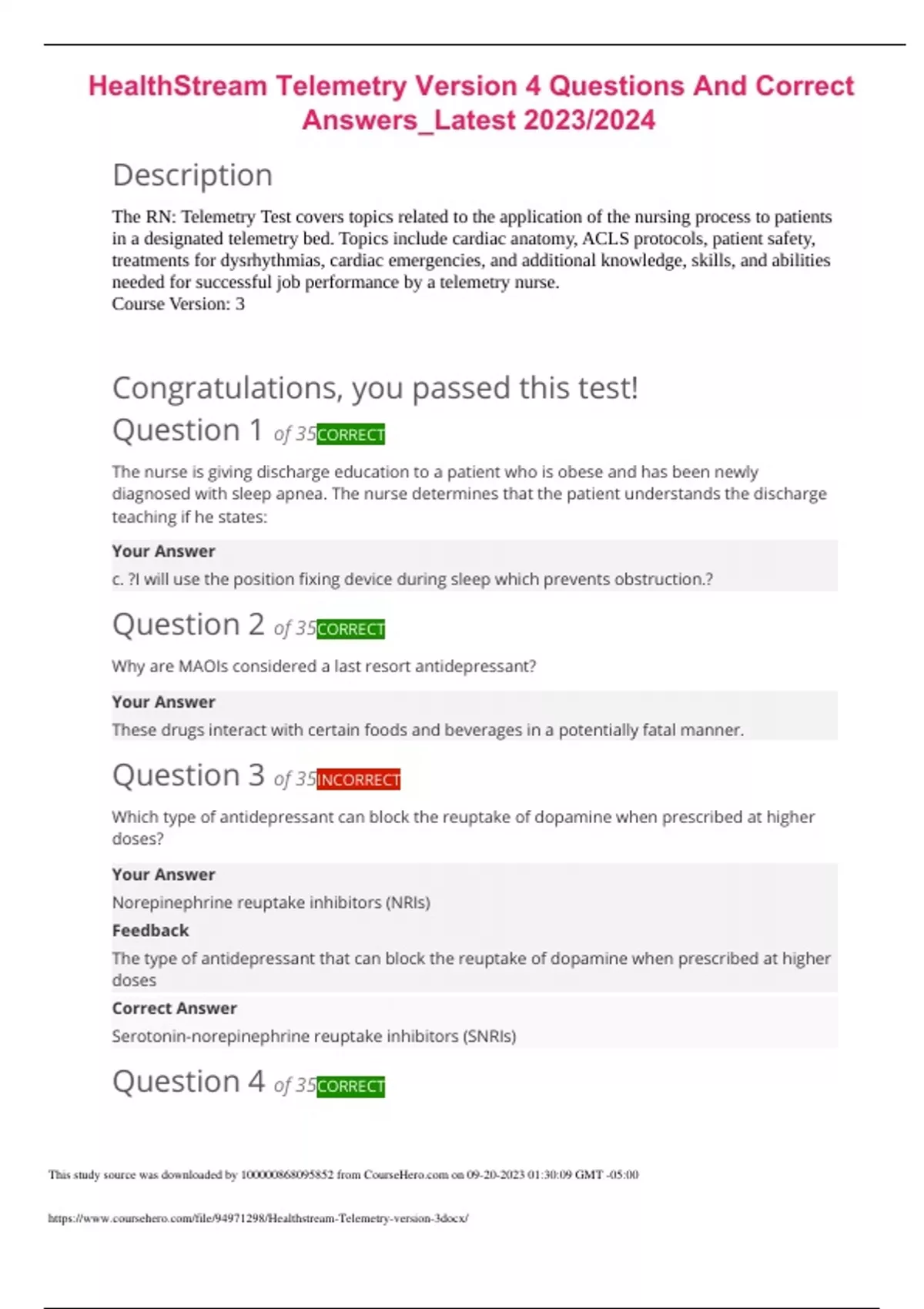 HealthStream Telemetry Version 4 Questions And Correct Answers_Latest 2023/2024