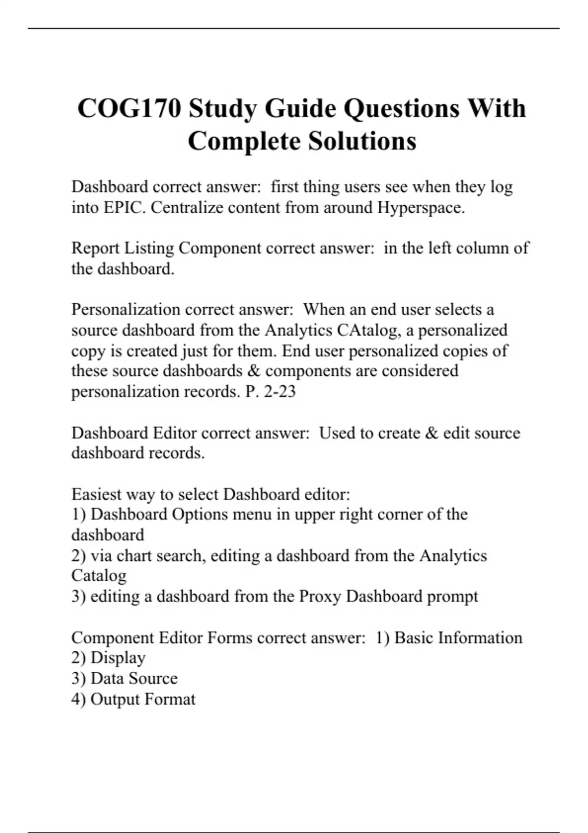 COG170 Study Guide Questions With Complete Solutions