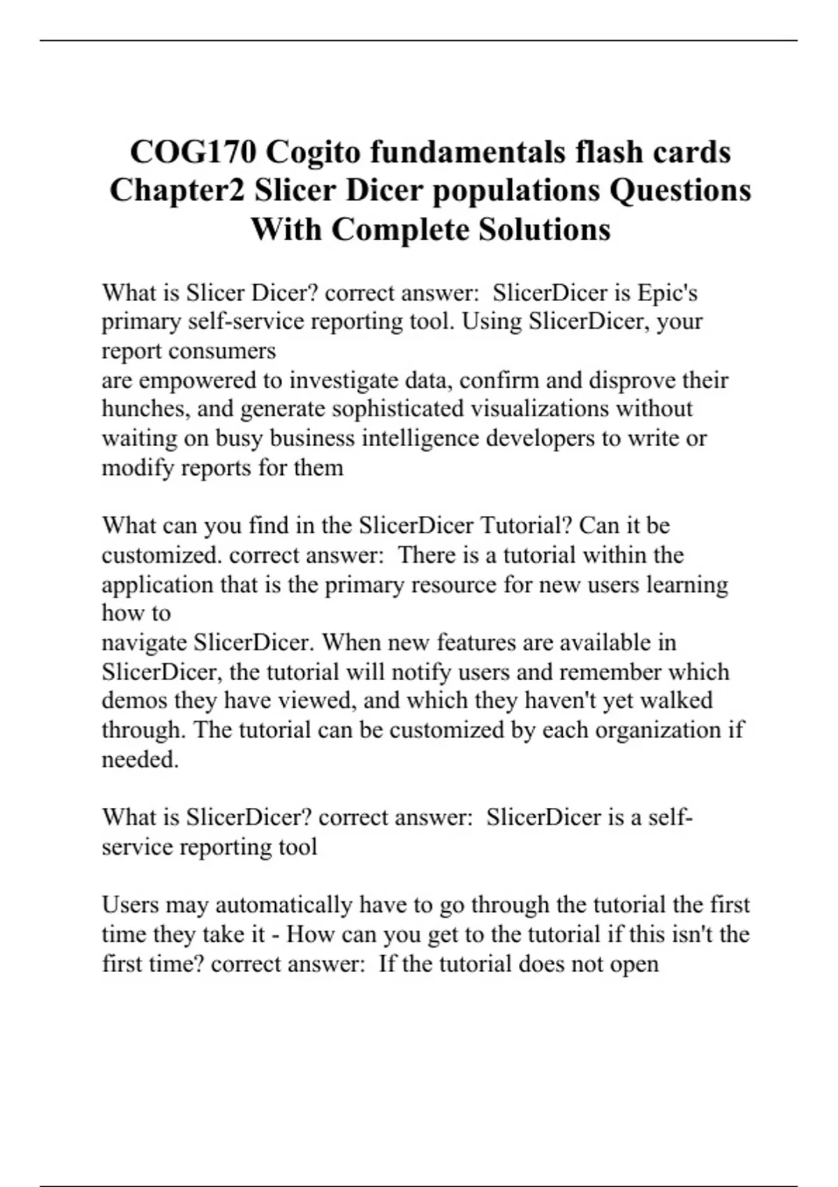 COG170 Cogito fundamentals flash cards Chapter2 Slicer Dicer populations Questions With Complete Solutions