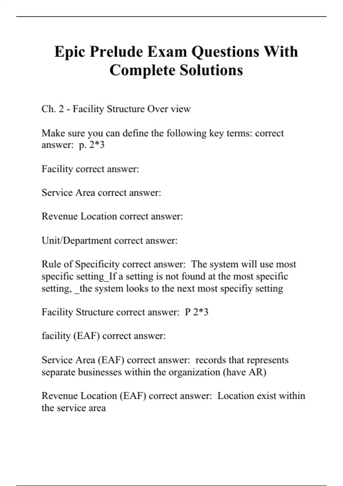 Epic Prelude Exam Questions With Complete Solutions
