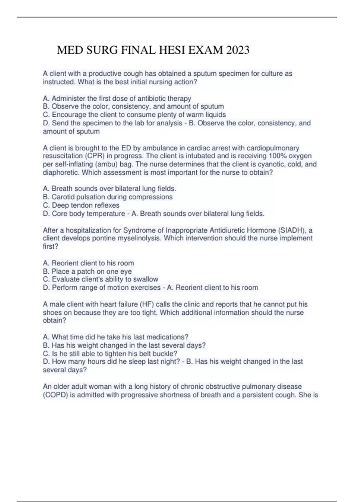 MED SURG FINAL HESI 2023 LATEST EXAM QUESTIONS AND ANSWER .MED SURG FINAL HESI 2023 LATEST EXAM QUESTIONS AND ANSWER MED SURG FINAL HESI 2023 LATEST EXAM QUESTIONS AND ANSWER