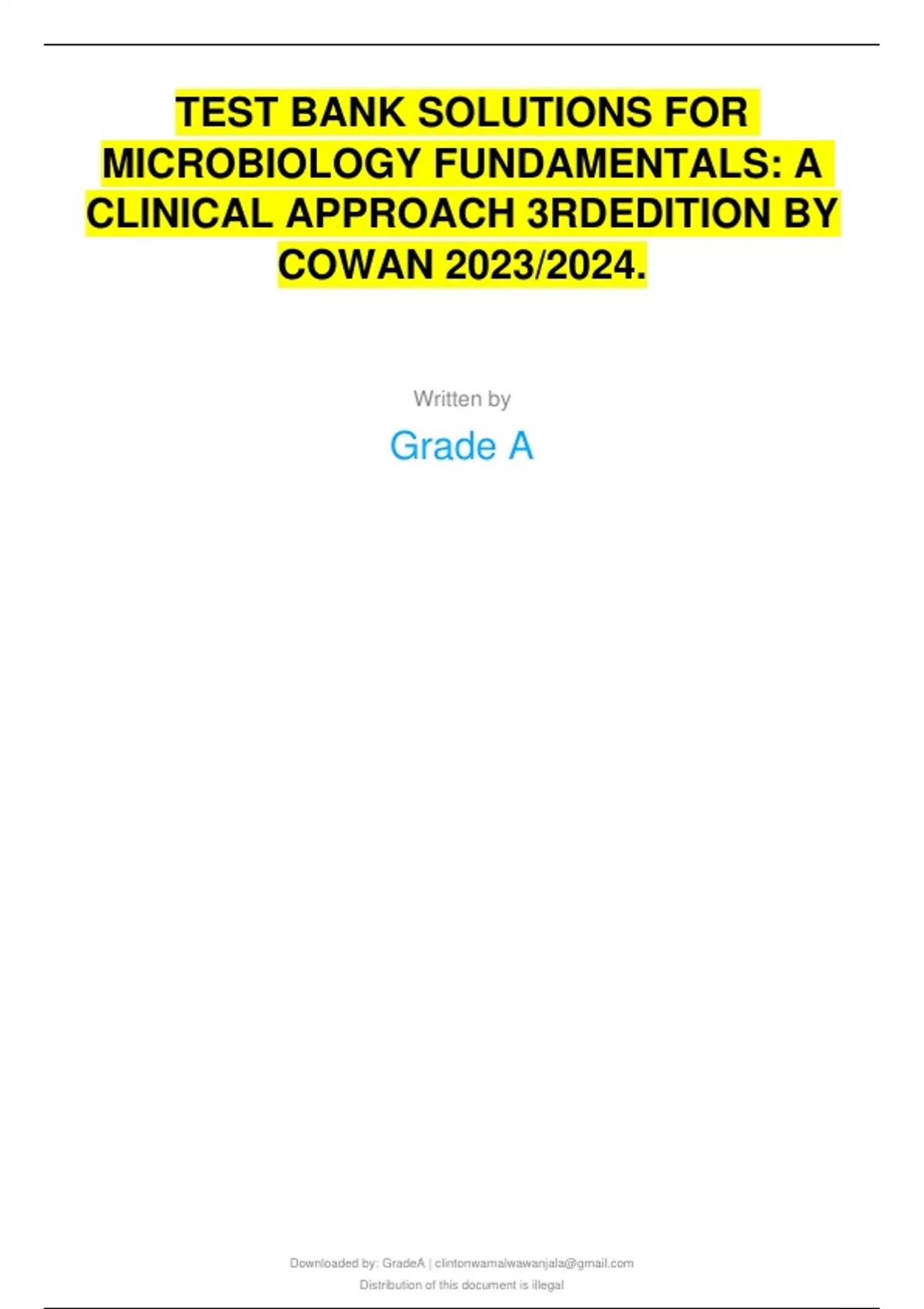 TEST BANK SOLUTIONS FOR MICROBIOLOGY FUNDAMENTALS: A CLINICAL APPROACH 3RD EDITION BY COWAN 2023/2024.
