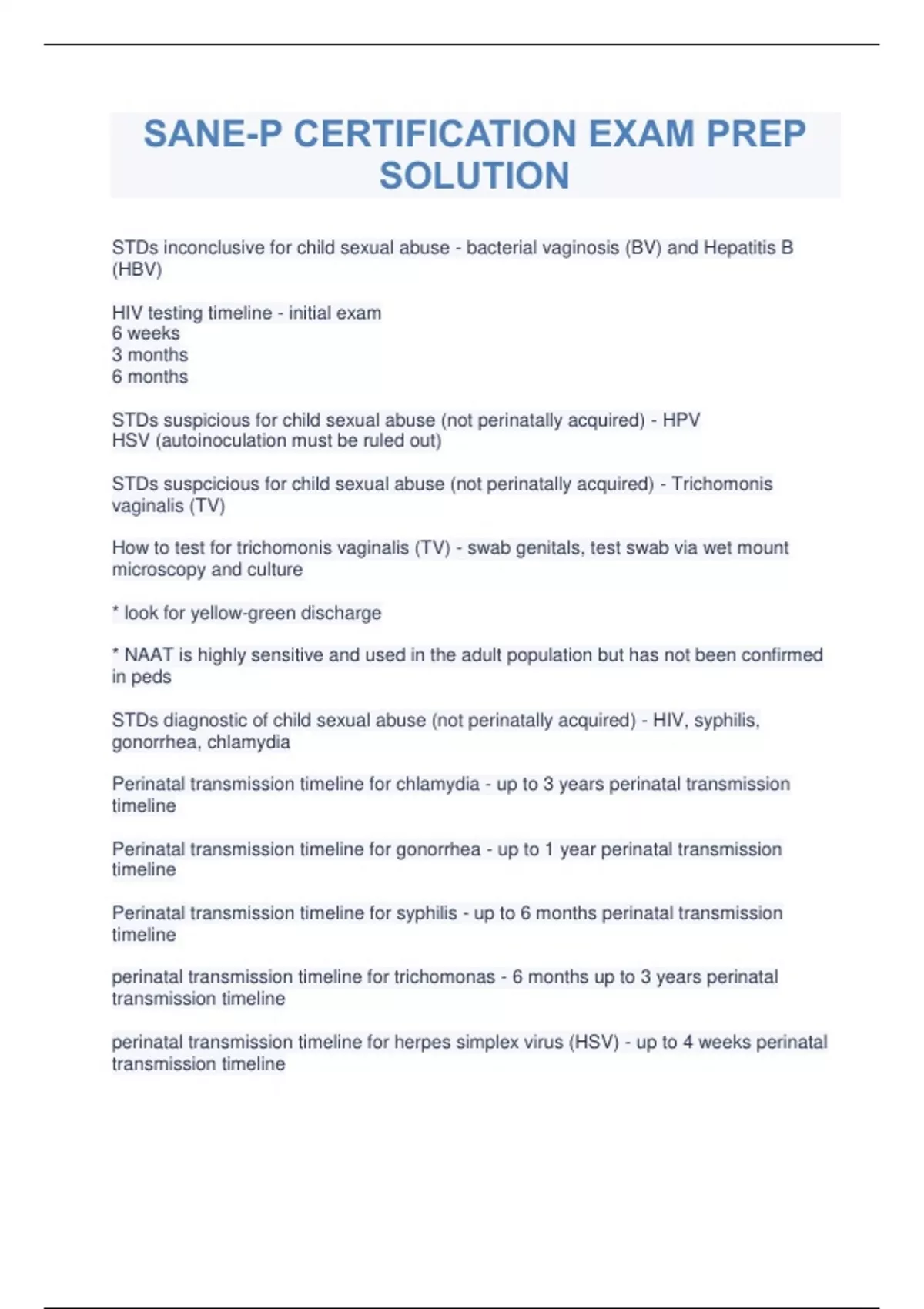 SANE-P CERTIFICATION EXAM PREP SOLUTION.