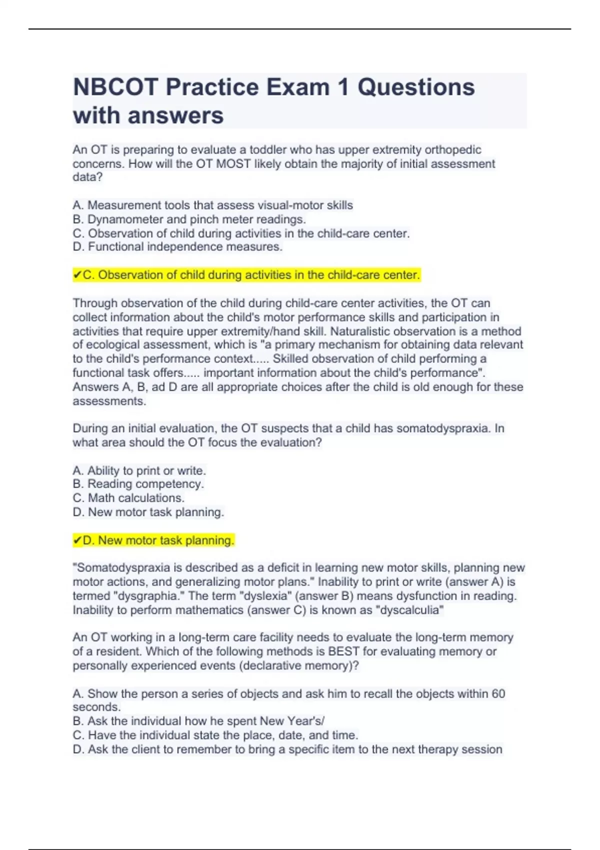 NBCOT Practice Exam 1 Questions with answers