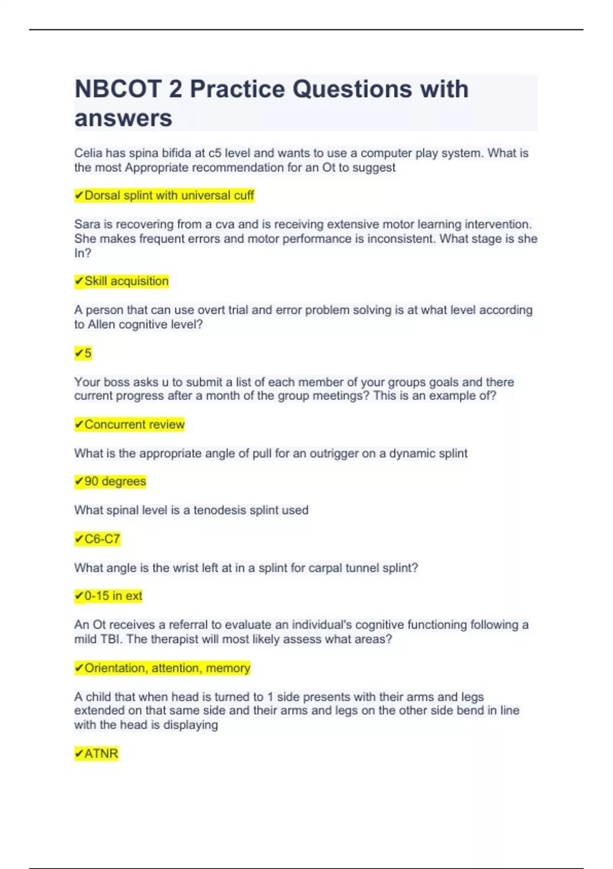 NBCOT 2 Practice Questions with answers