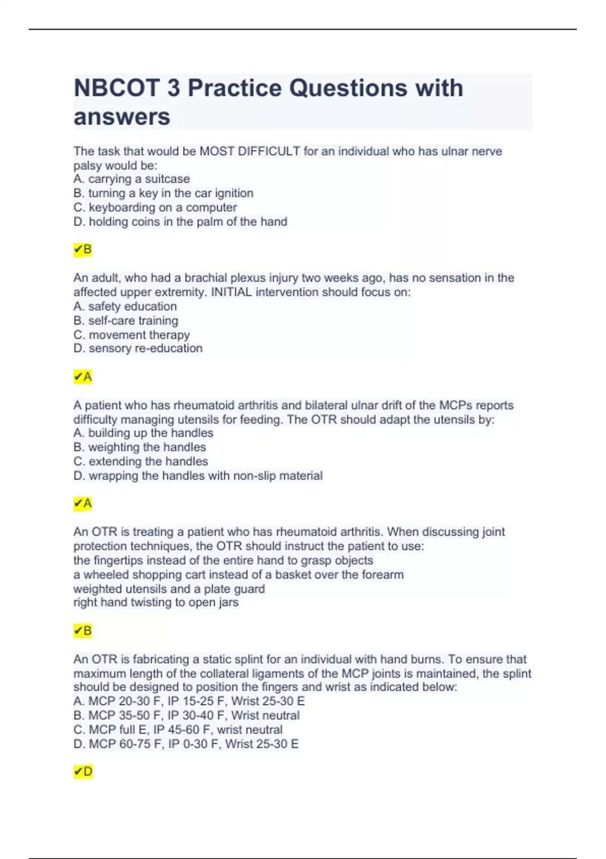 NBCOT 3 Practice Questions with answers