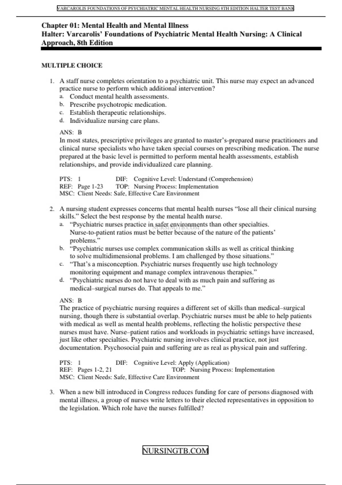 Varcarolis Foundations Of Psychiatric Mental Health Nursing 8th Edition Halter Test Bank. Contains Chapter 1 to 36.