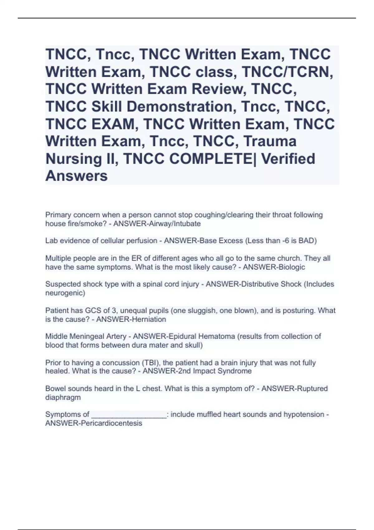 TNCC, Tncc, TNCC Written Exam, TNCC Written Exam, TNCC class, TNCC/TCRN, TNCC Written Exam Review, TNCC, TNCC Skill Demonstration, Tncc, TNCC, TNCC EXAM, TNCC Written Exam, TNCC Written Exam, Tncc, TNCC, Trauma Nursing II, TNCC COMPLETE| Verified Answers