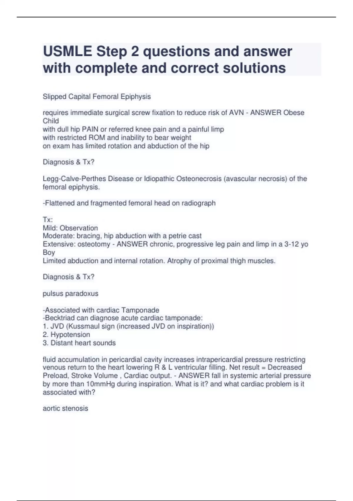 USMLE Step 2 questions and answer with complete and correct solutions