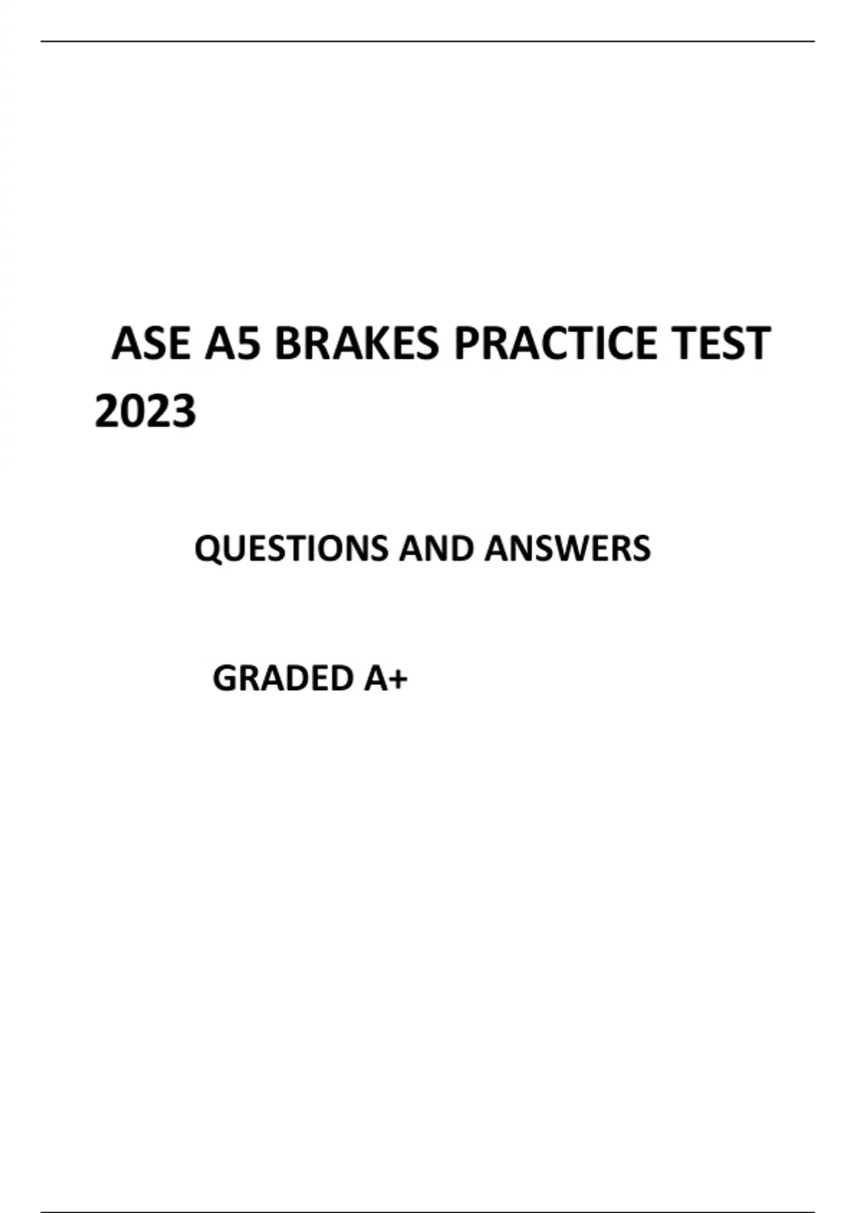 ASE A5 Brakes Practice Test Questions and Answers Latest 2023 GRADED A+ ASE A5 Brakes Practice Test Questions and Answers Latest 2023 GRADED A+ ASE A5 Brakes Practice Test Questions and Answers Latest 2023 GRADED A+