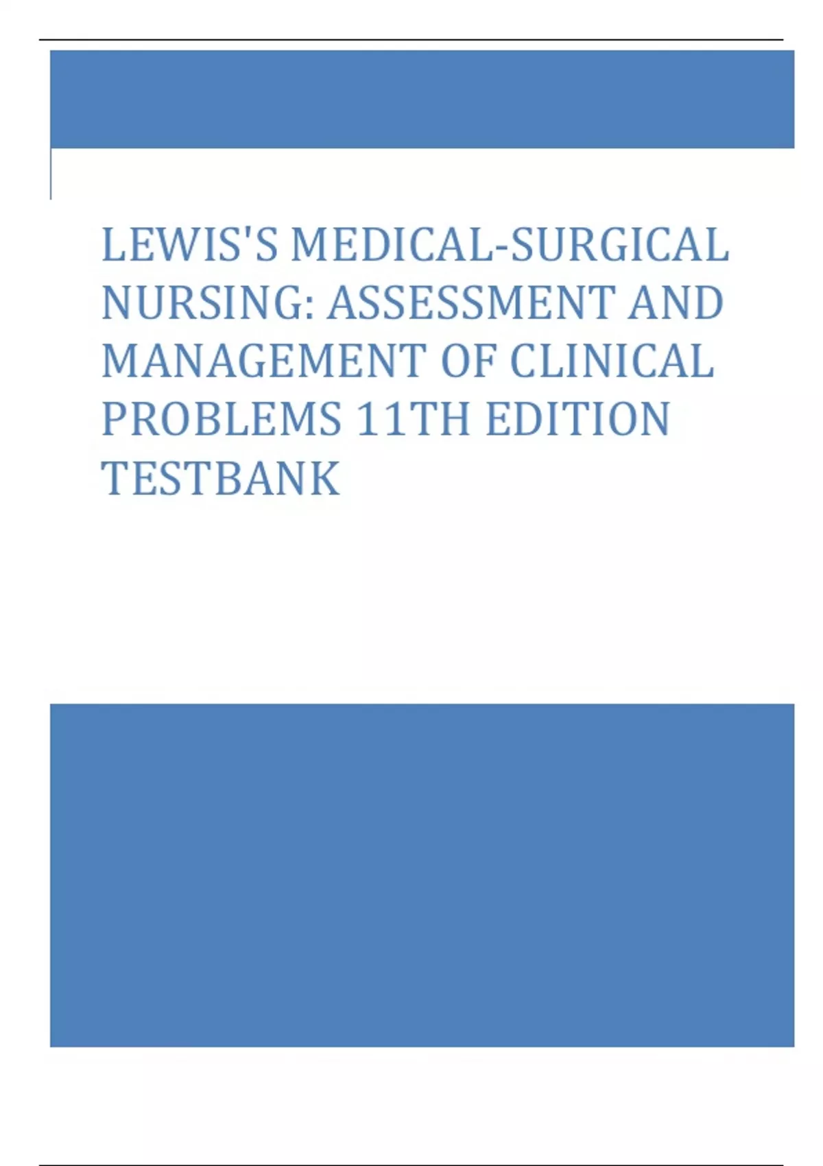 LEWIS'S MEDICAL-SURGICAL NURSING: ASSESSMENT AND MANAGEMENT OF CLINICAL PROBLEMS 11TH EDITION TESTBANK LEWIS'S MEDICAL-SURGICAL NURSING: ASSESSMENT AND MANAGEMENT OF CLINICAL PROBLEMS 11TH EDITION TESTBANK LEWIS'S MEDICAL-SURGICAL NURSING: ASSESSMENT AND MANAGEMENT OF CLINICAL PROBLEMS 11TH EDITION TESTBANK