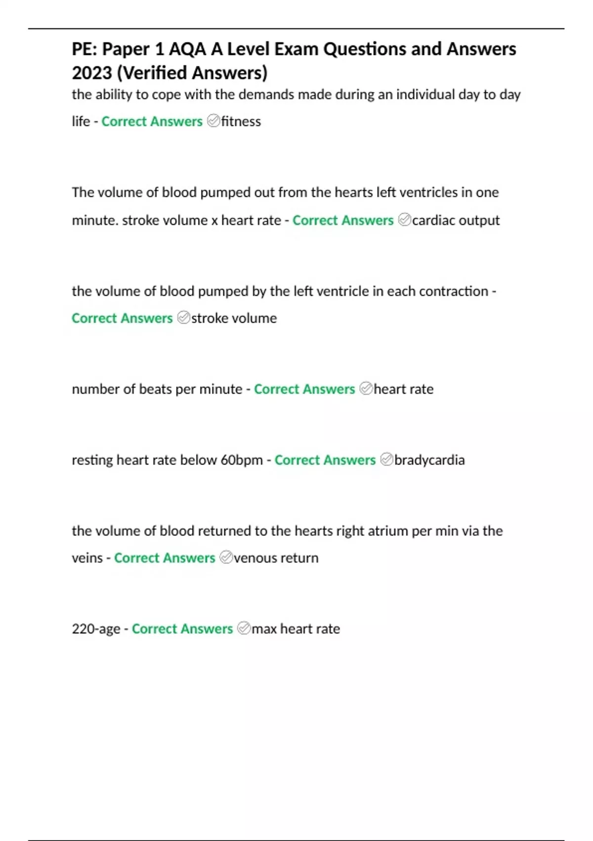 PE: Paper 1 AQA A Level Exam Questions and Answers 2023 (Verified Answers)