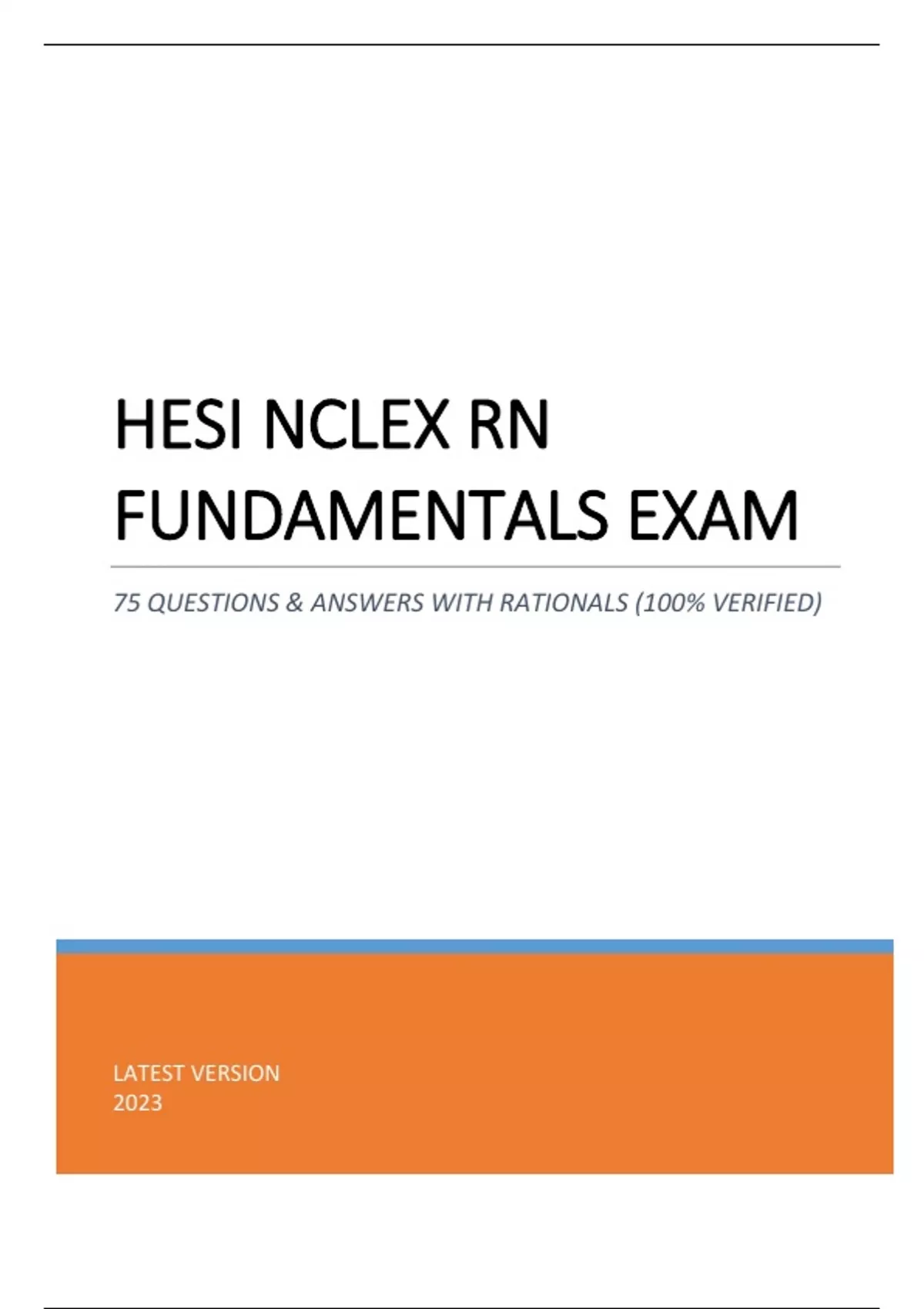 HESI NCLEX RN FUNDAMENTALS EXAM - (GRADED 96%) 75 QUESTIONS & ANSWERS WITH RATIONALS (100% VERIFIED) LATEST 2023