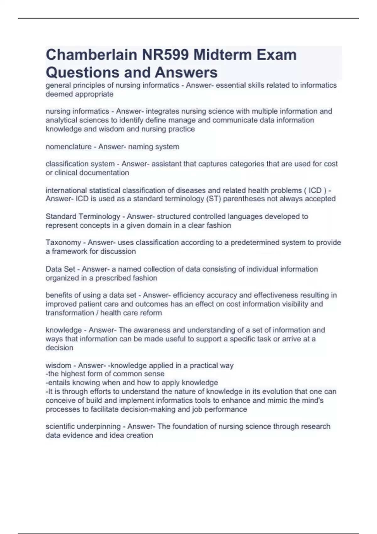 chamberlain nr599 midterm exam questions and answe