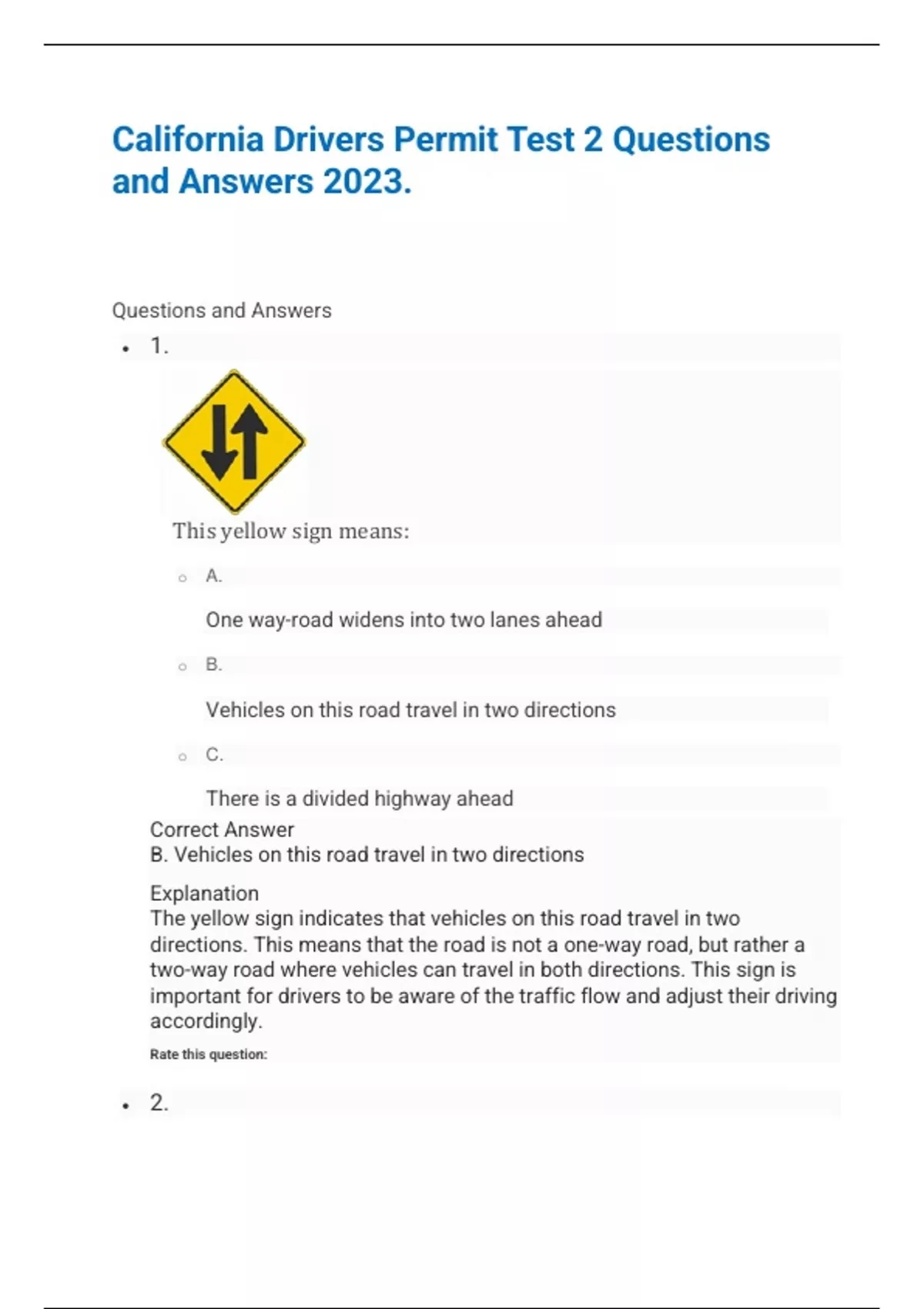 California Drivers Permit Test 2 Questions and Answers 2023.