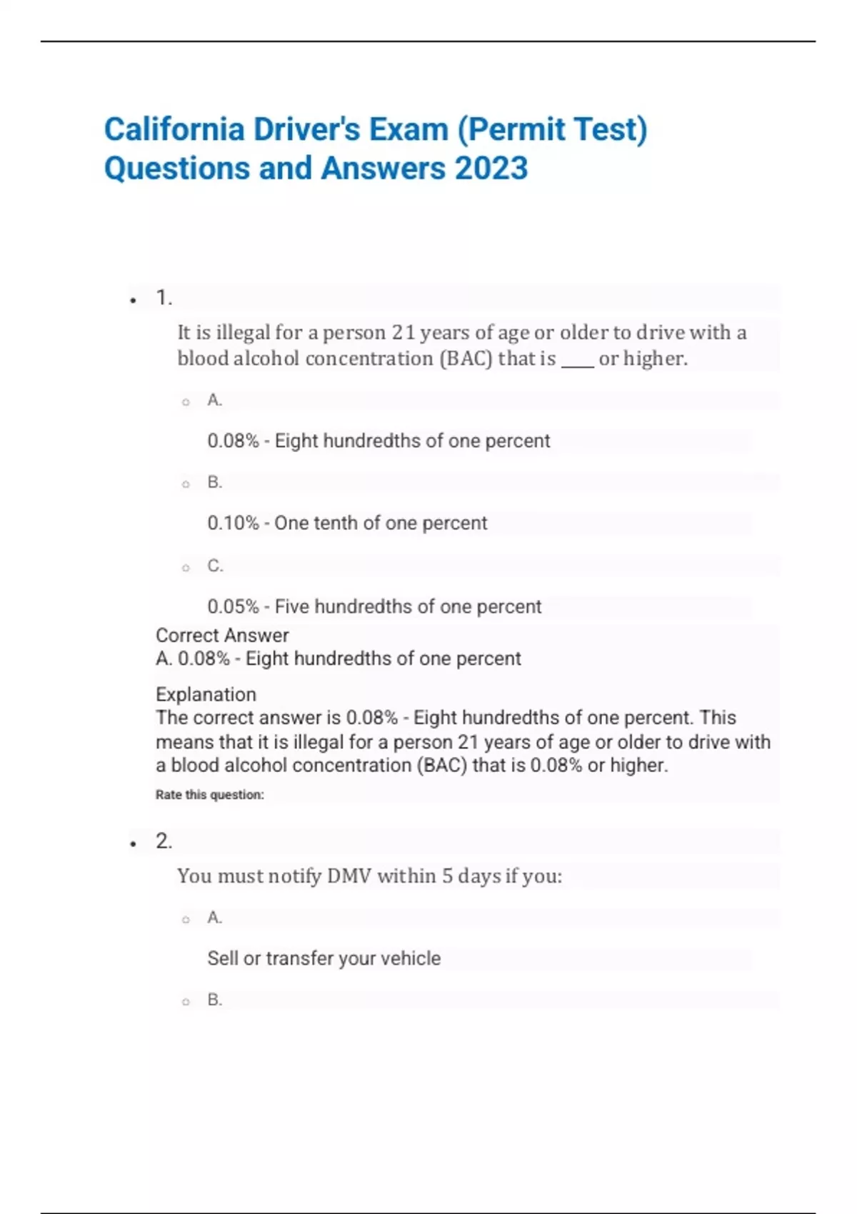 California Driver's Exam (Permit Test) Questions and Answers 2023