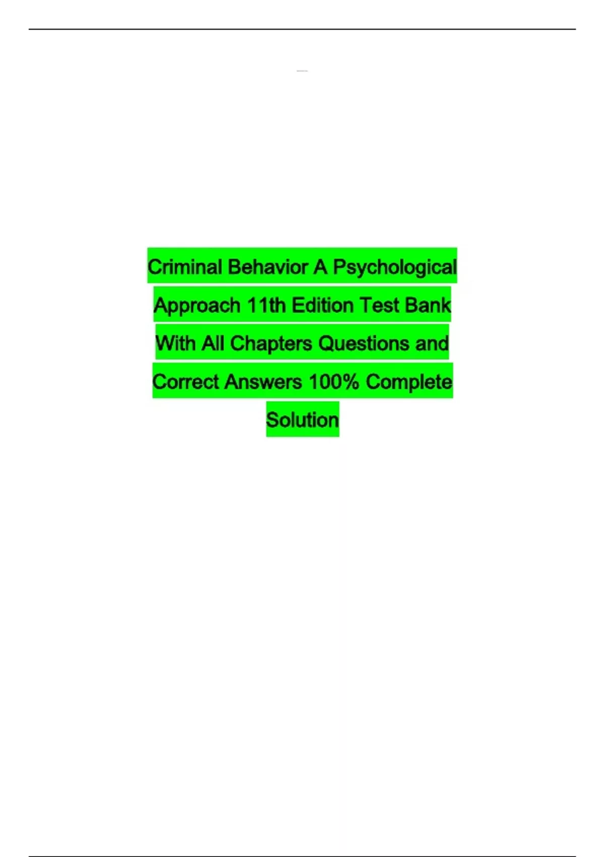 Criminal Behavior A Psychological Approach 11th Edition Test Bank With All Chapters Questions and Correct Answers 100% Complete Solution