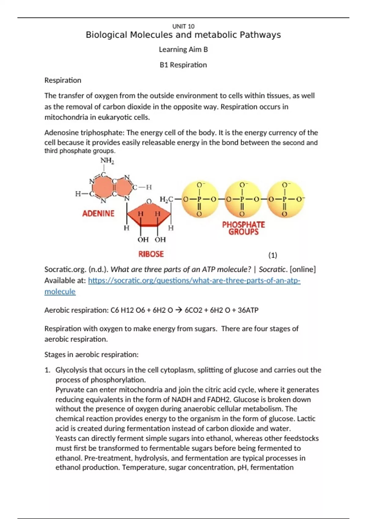 Essay Unit 10 - Biological Molecules and Metabolic Pathways B