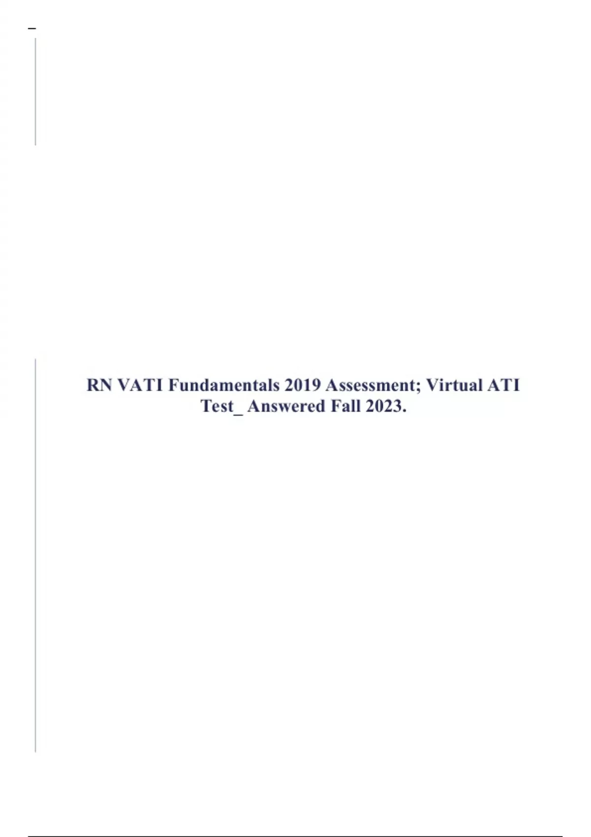 RN VATI Fundamentals 2019 Assessment; Virtual ATI Test_ Answered Fall 2023.