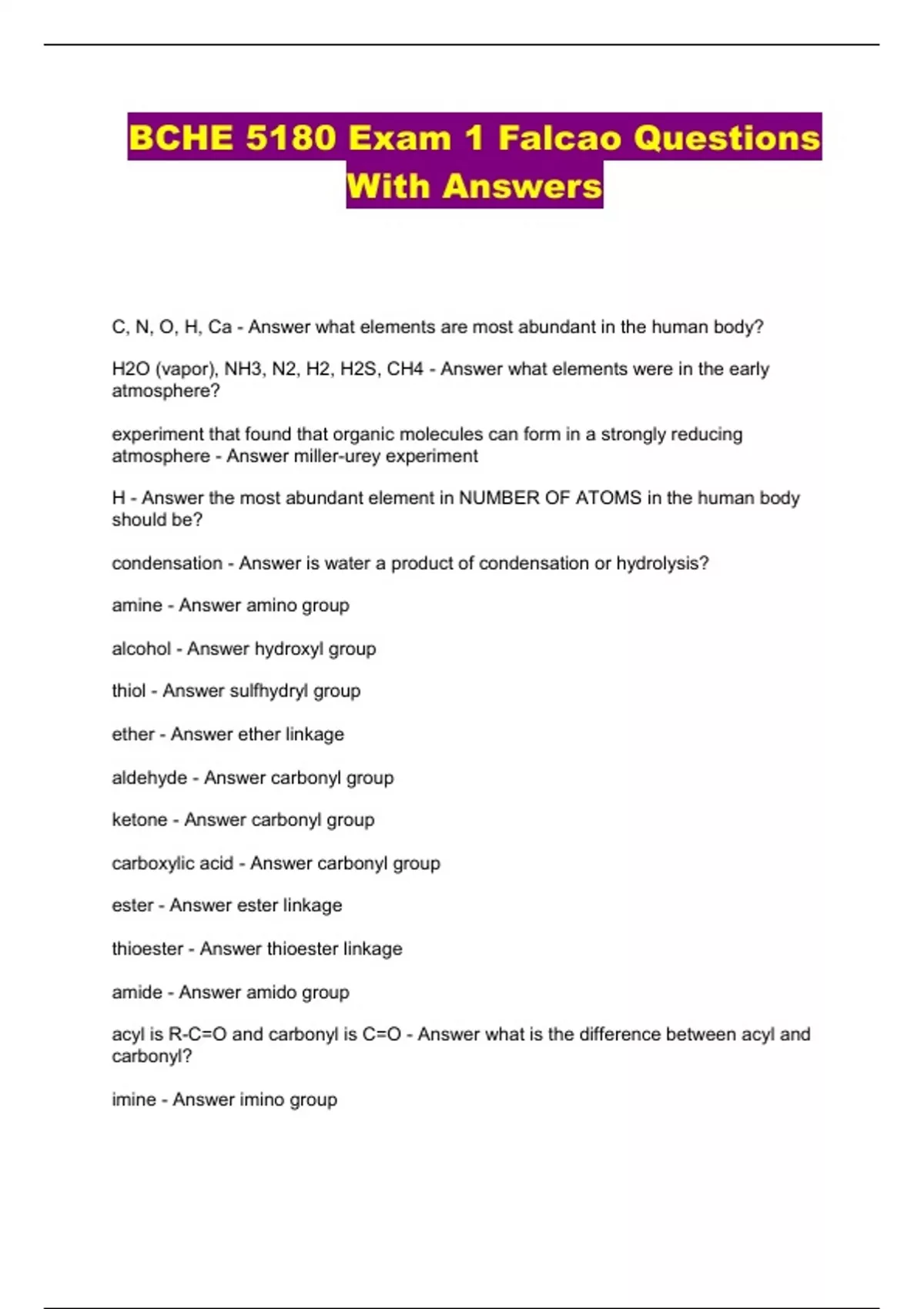 BCHE 5180 Exam 1 Falcao Questions With Answers...