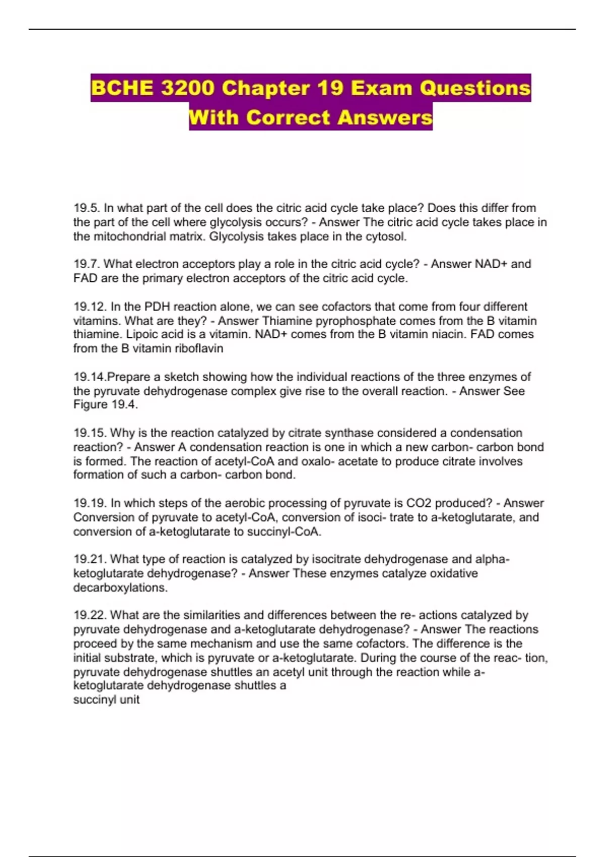 BCHE 3200 Chapter 19 Exam Questions With Correct Answers...
