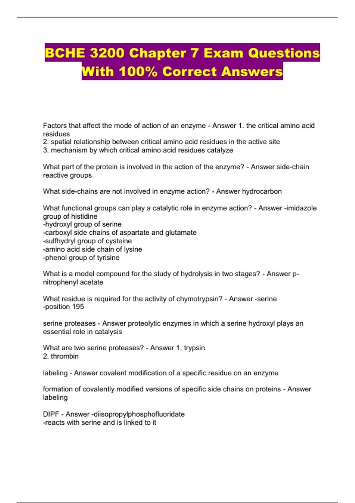 BCHE 3200 Chapter 7 Exam Questions With 100% Correct Answers...
