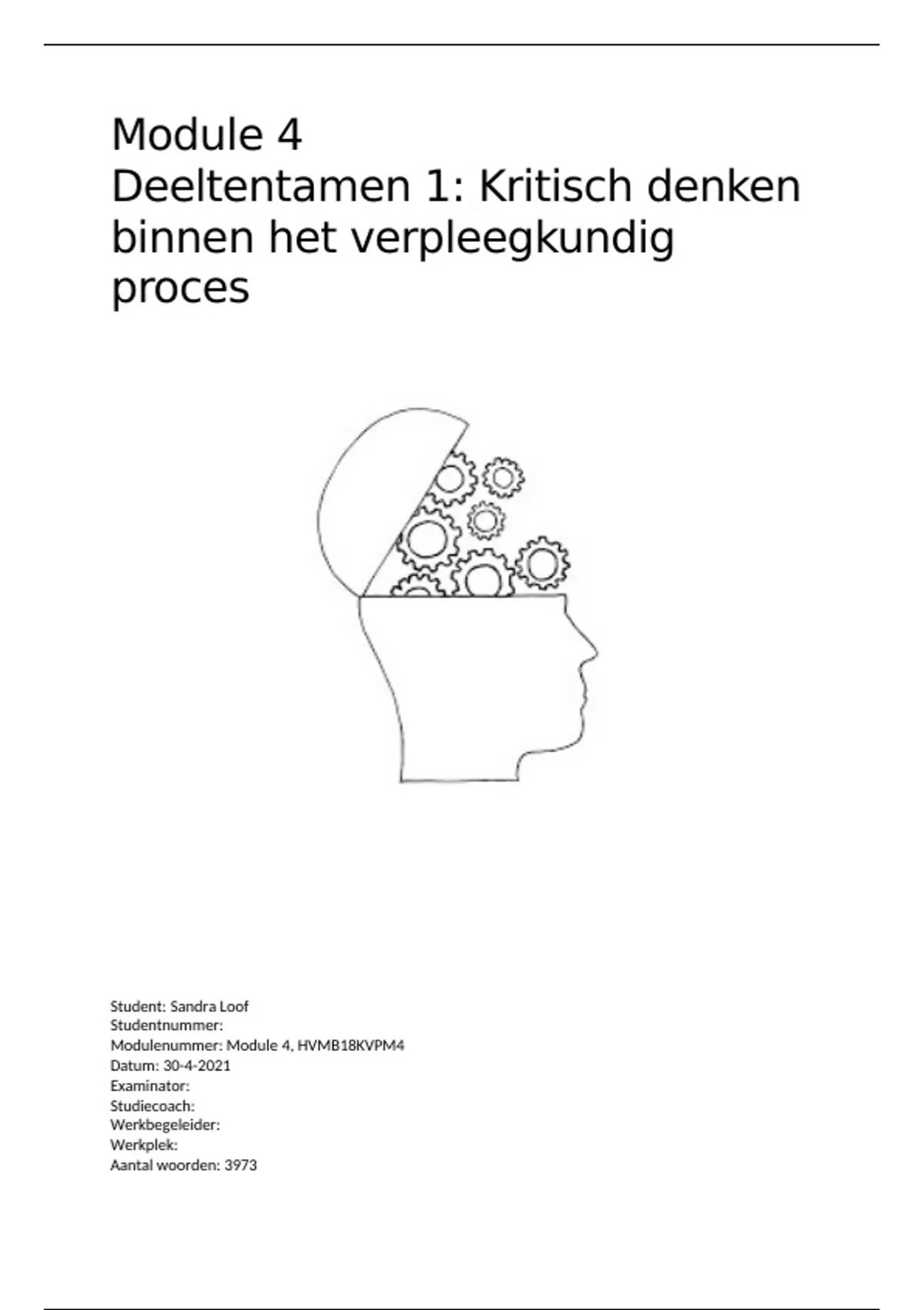 In het kader van het tentamen van module 4 ‘’Kritisch Redeneren binnen het verpleegproces’’ is dit