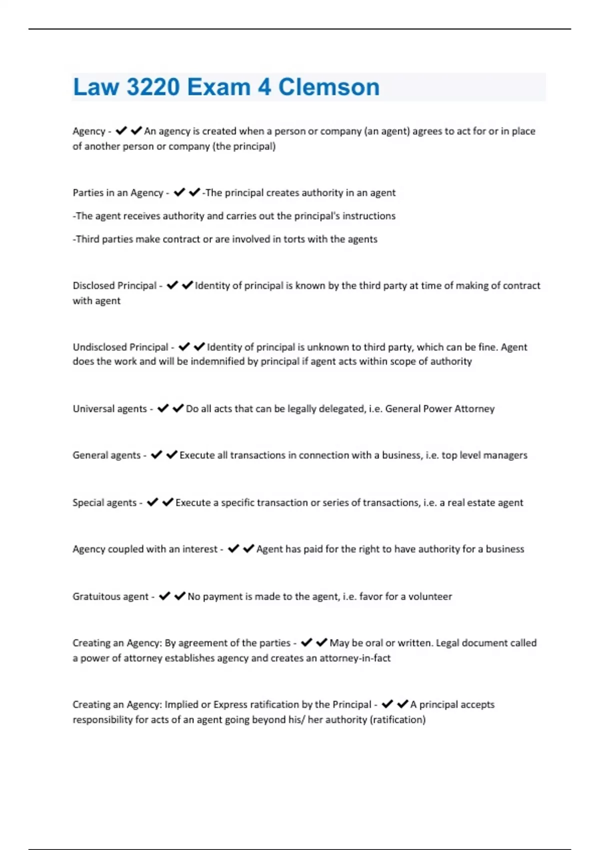 Law 3220 Exam 4 Clemson Exam Solved 100% Correct!!
