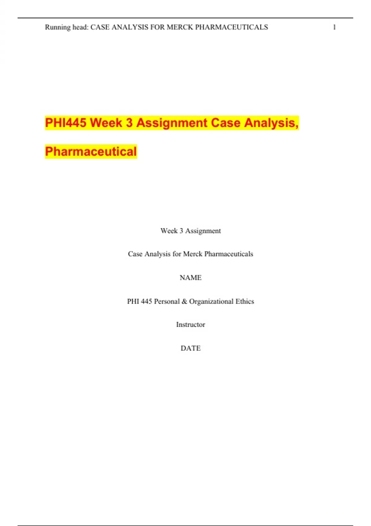PHI445 Week 3 Assignment Case Analysis, Pharmaceutical