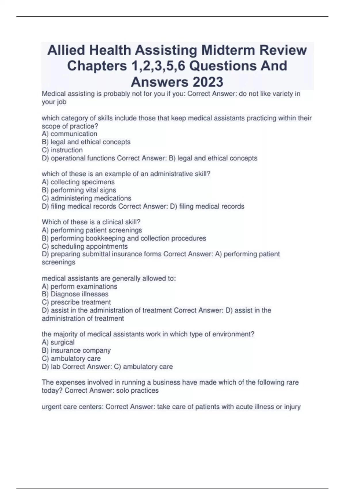 Allied Health Assisting Midterm Review Chapters 1