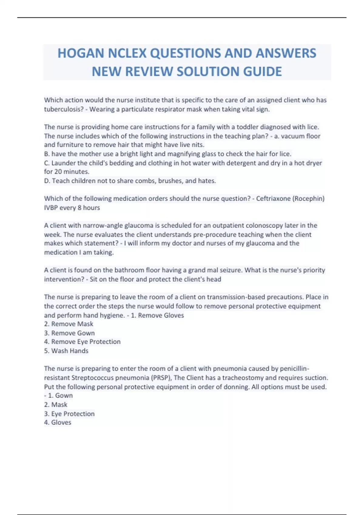 HOGAN NCLEX QUESTIONS AND ANSWERS NEW REVIEW SOLUTION GUIDE