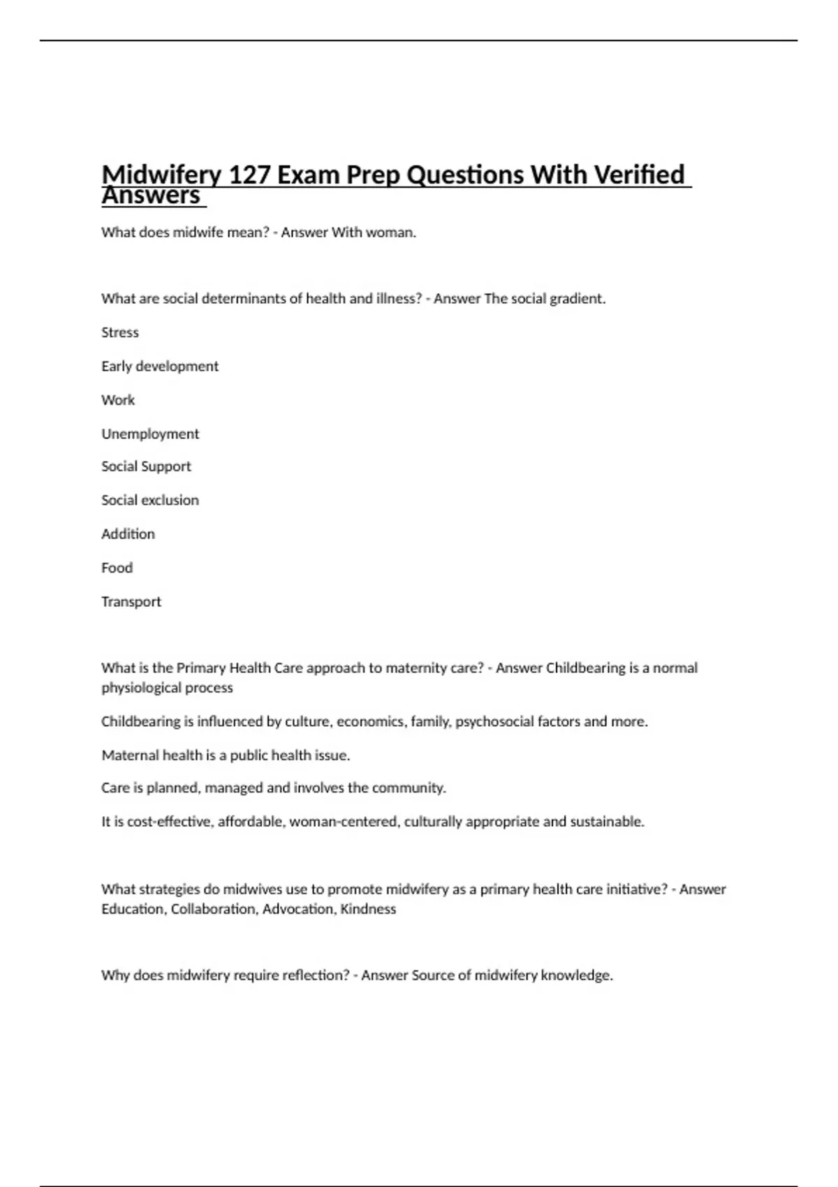 Midwifery 127 Exam Prep Questions With Verified Answers