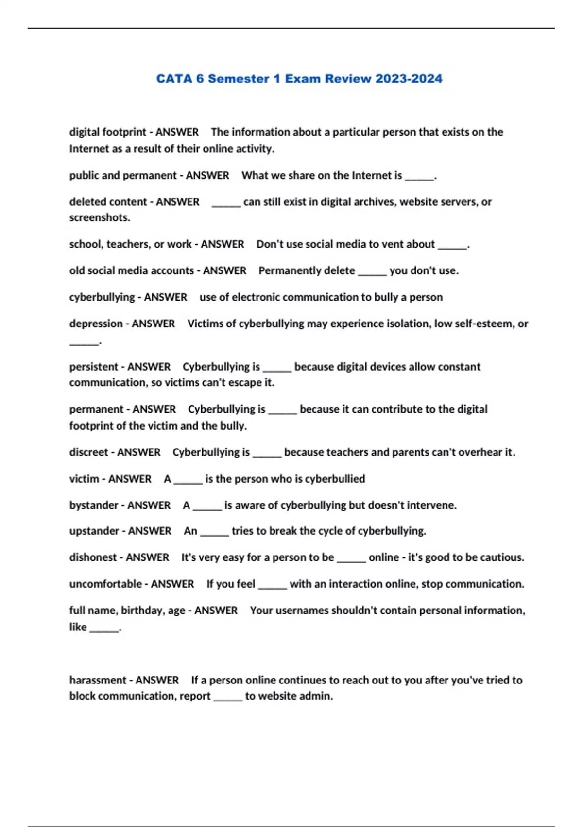 CATA 6 Semester 1 Exam Review ...