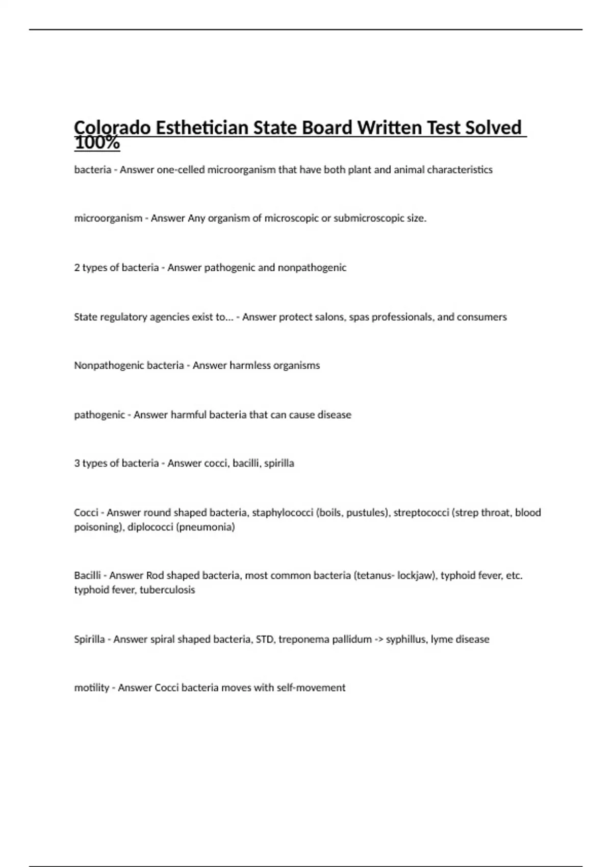 Colorado Esthetician State Board Written Test Solved 100%