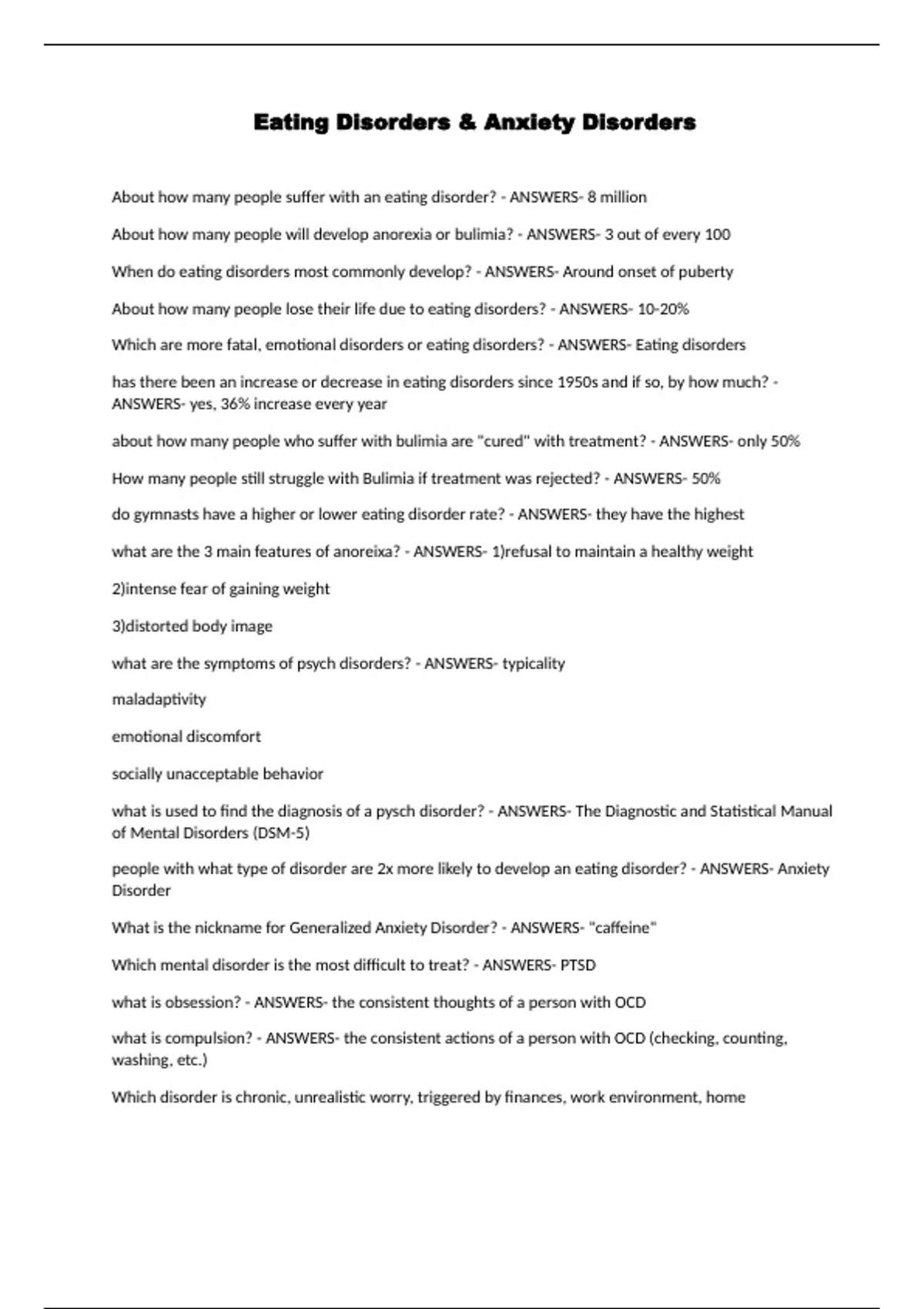 Eating Disorders & Anxiety Disorders