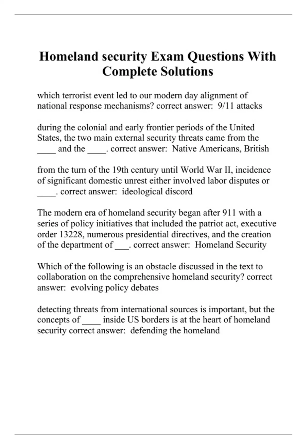 Homeland security Exam Questions With Complete Solutions