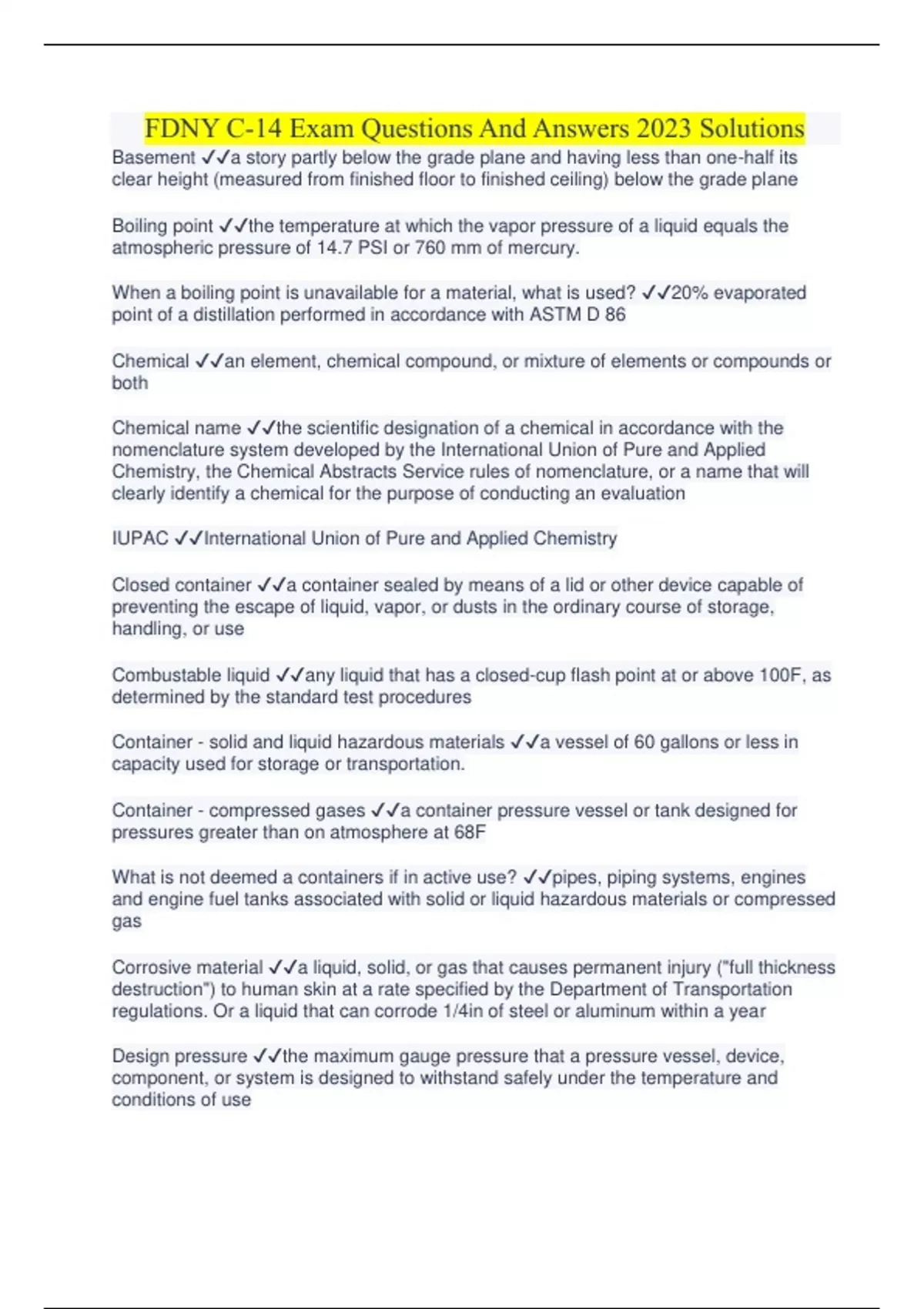 FDNY C-14 Exam Questions And Answers 2023 Solutions