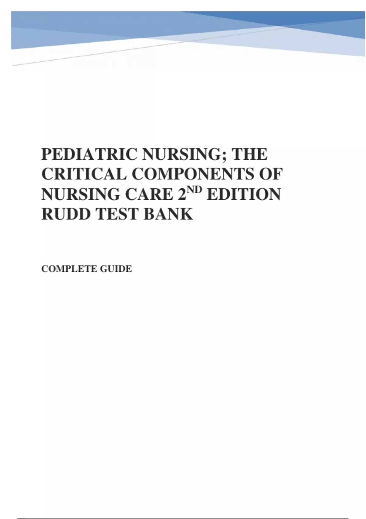 Pediatric Nursing The Critical Components of Nursing Care 2nd Edition Rudd Test Bank