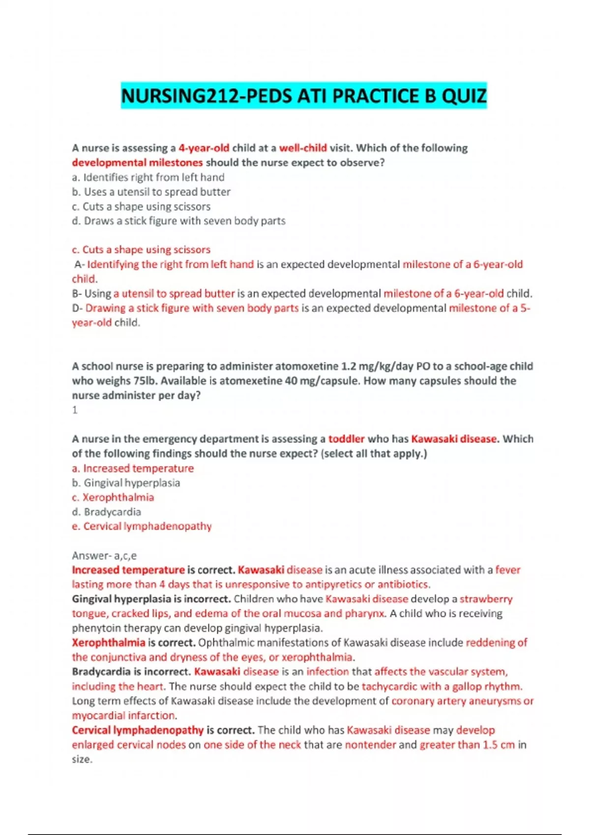 ATI PEDIATRICS NURSING PRACTICE QUIZ 2023. QUESTIONS WITH 100% VERIFIED ANSWERS