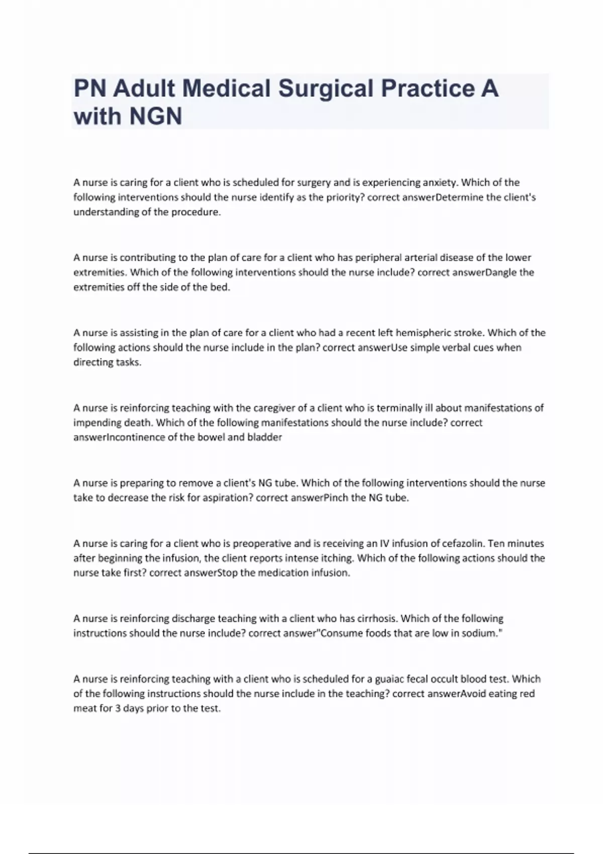 ATI PN ALDULT MEDICAL SURGICAL PRACTICE EXAM 2023