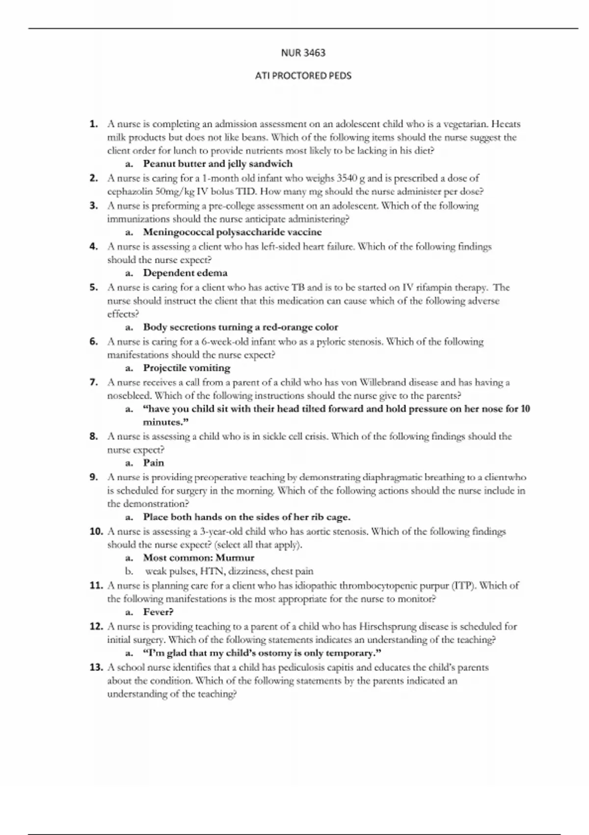 ATI PROCTROED PEDIATRIC NUR QUESTIONS AND ANSWERS 2023. MOST RECENT WITH 100% SCORES