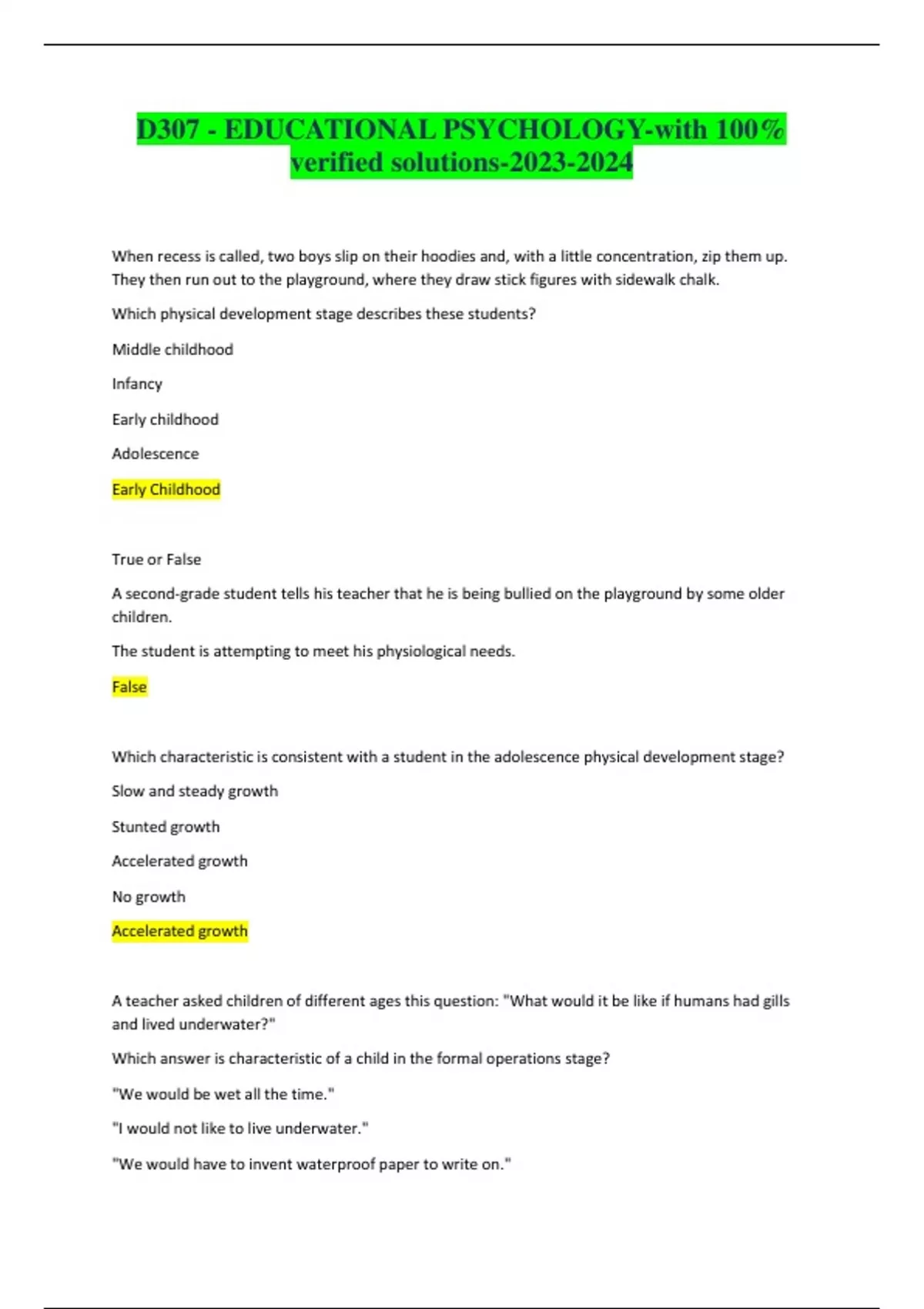 D307 - EDUCATIONAL PSYCHOLOGY-with 100% verified solutions-