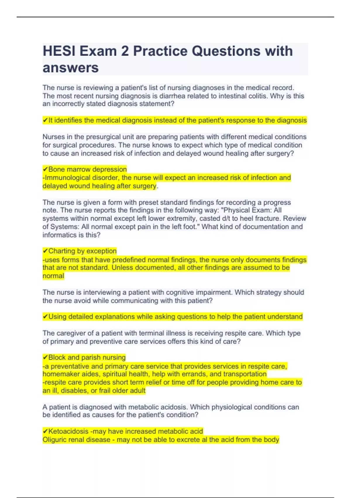 HESI Exam 2 Practice Questions with answers