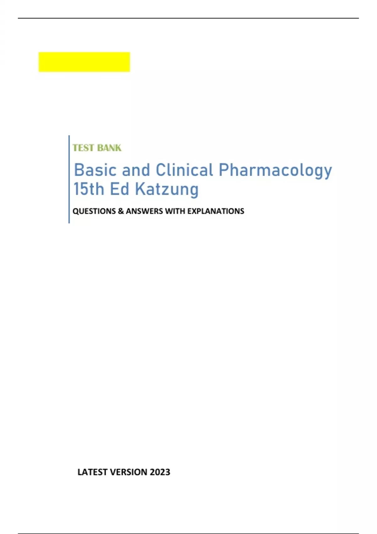 Basic and Clinical Pharmacology 15th Ed Katzung - (SCORED 97%) QUESTIONS & ANSWERS WITH EXPLANATIONS LATEST 2023