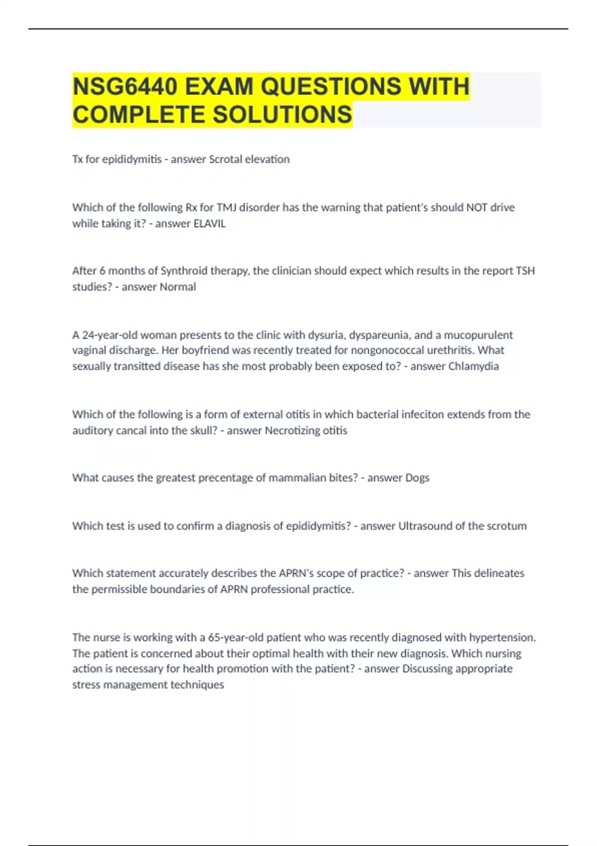 NSG6440 EXAM QUESTIONS WITH COMPLETE SOLUTIONS
