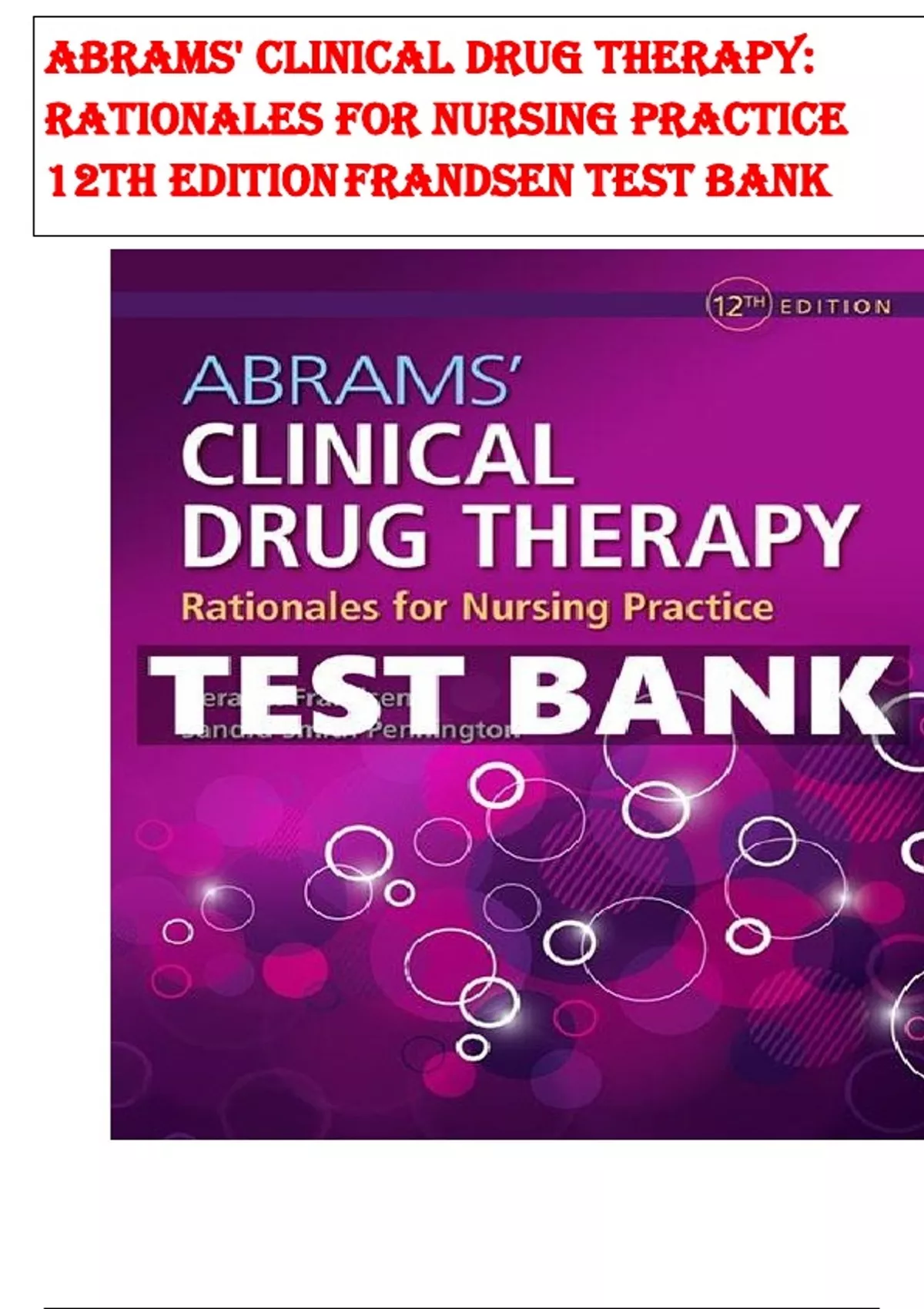 Test Bank of Abrams' Clinical Drug Therapy Rationales for Nursing Practice 12th Edition Geralyn Frandsen | Fully Covered