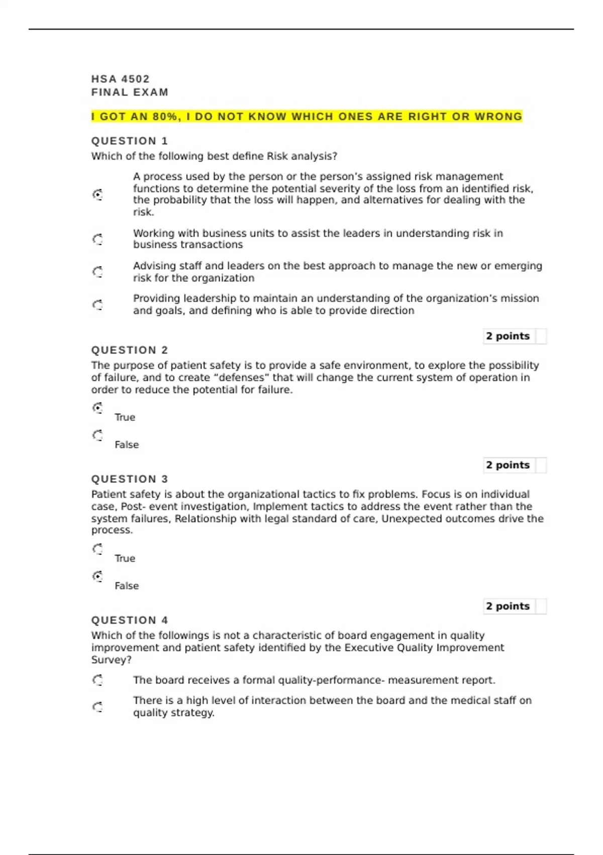 hsa 4502 final exam exam spring 2023 100 score