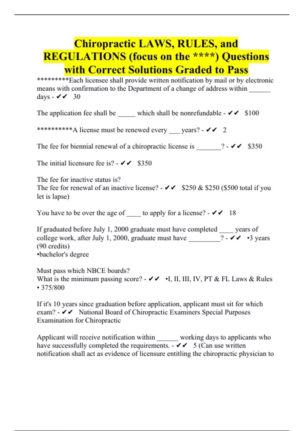 Chiropractic LAWS, RULES, and REGULATIONS (focus on the ****) Questions with Correct Solutions Graded to Pass