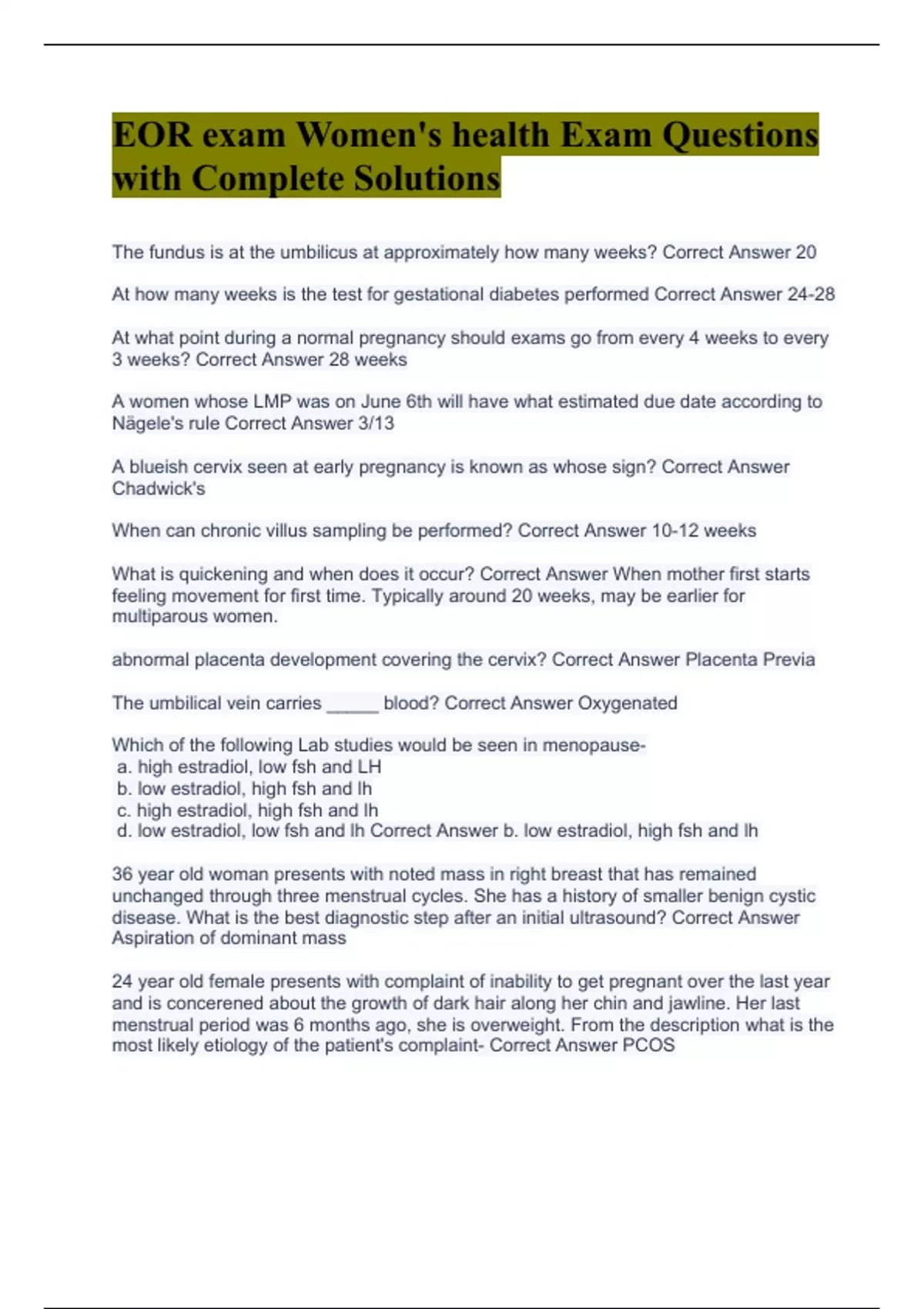 EOR exam Women's health Exam Questions with Complete Solutions